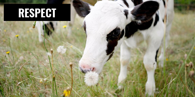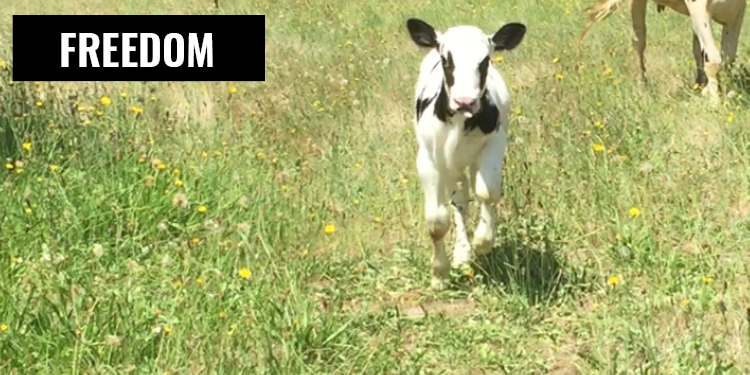 Compare Journey’s life of love and care with the typical life of a baby cow born into the food production system.