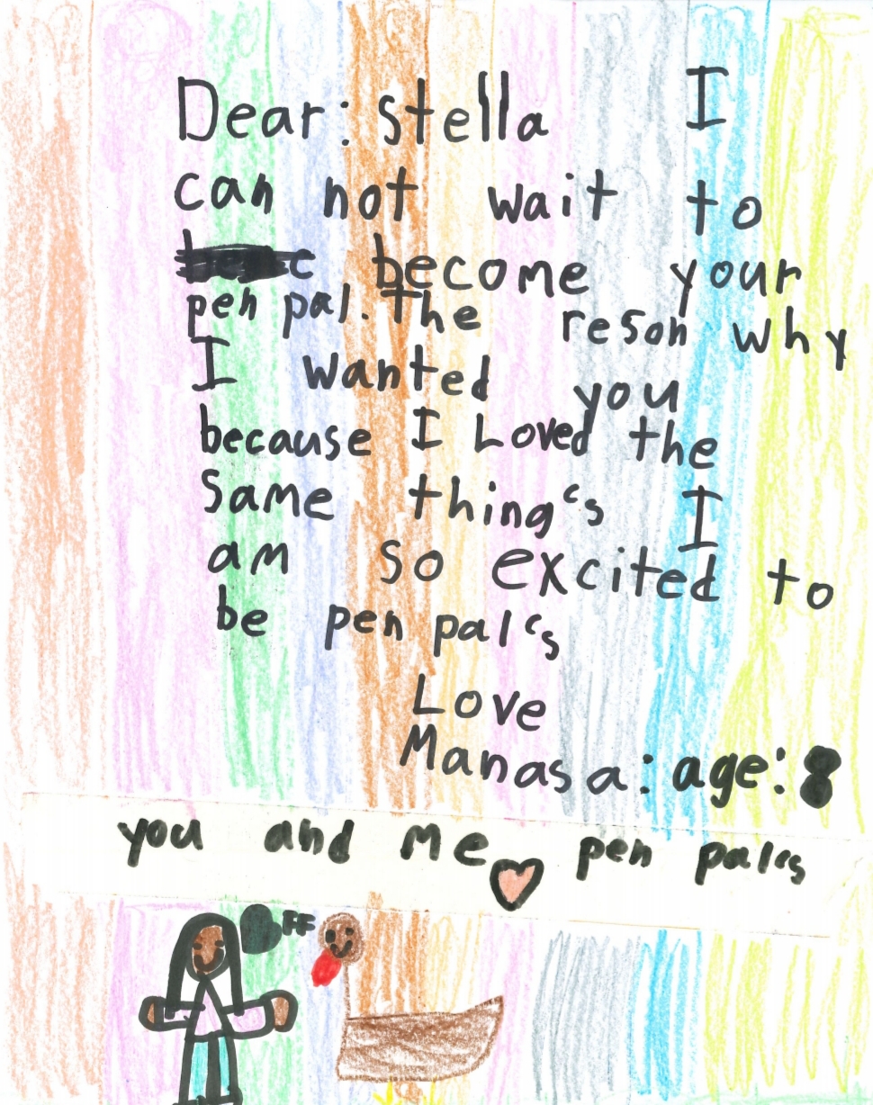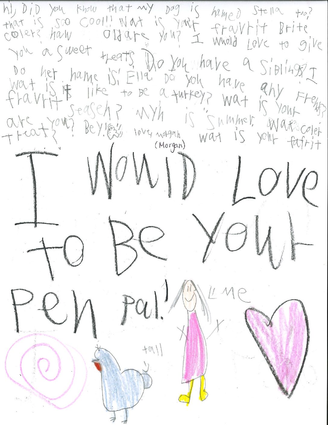 Letters can be sent to P.O. Box 171, Sultan, WA 98294 Attn: Maddie Henning (please include first name and age). If you are sending in letters from a classroom, please include the teacher’s name and class grade with the Pen Pal letters. Reach out to our education team at education@pasadosafehaven.org with questions.